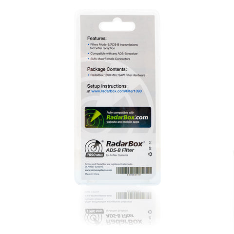ADS-B 1090 MHz Bandpass SMA Filter. Optimizes 1090 MHz ADS-B reception and substantially reduces interference. Guaranteed range improvement. Compatible with any ADS-B receiver that has an SMA connector.