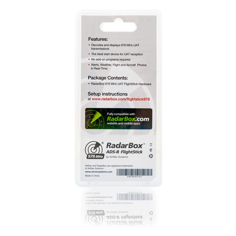 The AirNav FlightStick UAT 978 MHz is a portable and inexpensive UAT ADS-B receiver dongle designed for flight tracking. This version includes an integrated Amplifier, Filter, and Static Protection for maximum reception range and optimal 978 MHz performance. Track real-time flight positions, altitude, origin, destination, speed & other flight parameters and view live data on AirNavRadar.com and on our mobile apps.